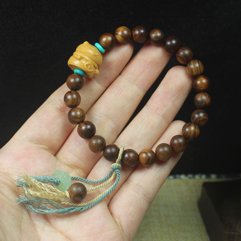 Material: Synthetic ebony wood, resin charm, polyester tassel