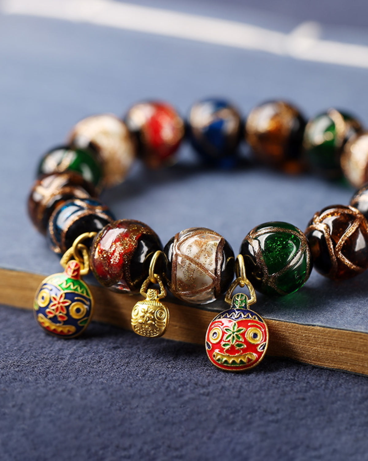 Glass Beads Charm – Five Gods of Wealth Totem with Red Cord